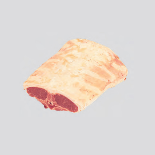 A Short Loin Pair is prepared from a Carcase by a straight cut along both sides of the 6 lumbar vertebrae from the lumbo-sacral to the dorso-lumbar joints. The Flank is removed at a pre-established distance from the ventral edge of the eye muscle.